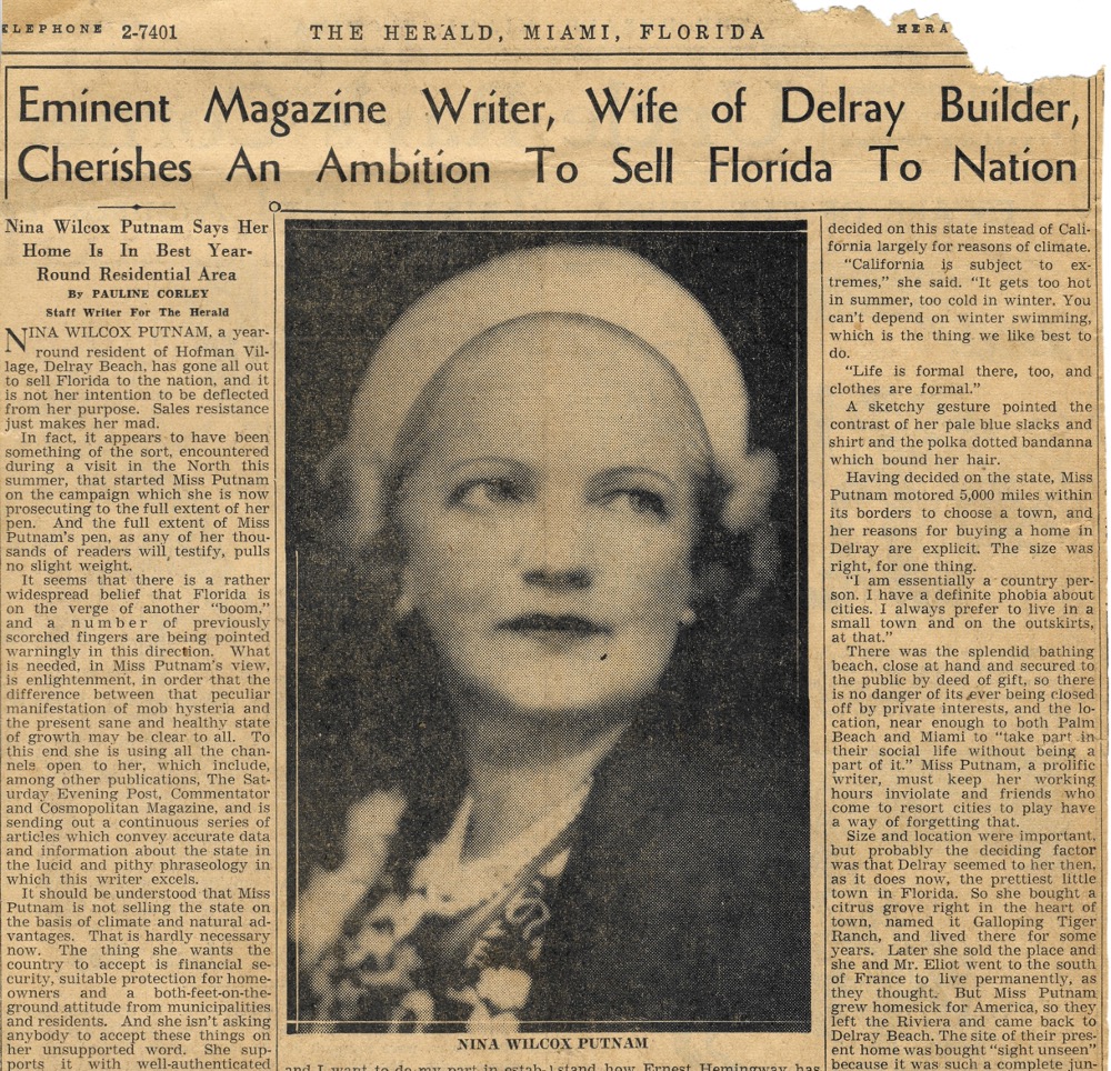 According to an article in the Miami Herald, Putnam was “essentially a country person. I always prefer to live in a small town and on the outskirts at that.” Still, she was very involved in the community, even donating $100 toward the Delray Beach Library. She also allegedly had the first swimming pool in Delray Beach.